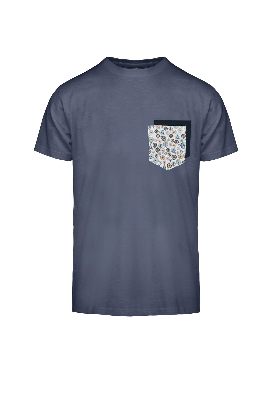 T-shirt regular fit in cotone con doppio taschino fantasia