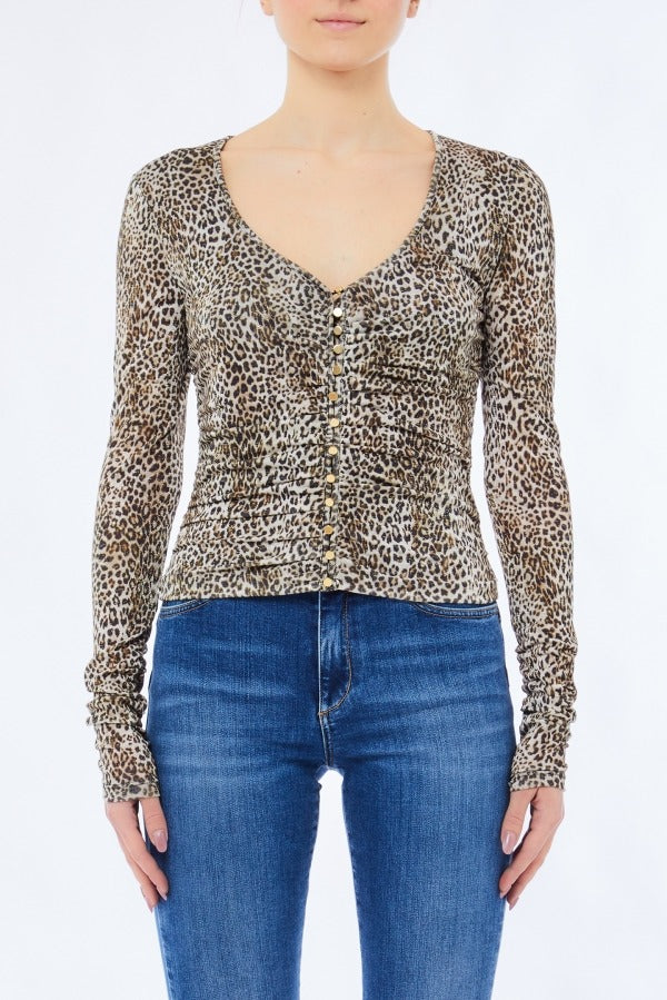 Top arricciato in misto lana