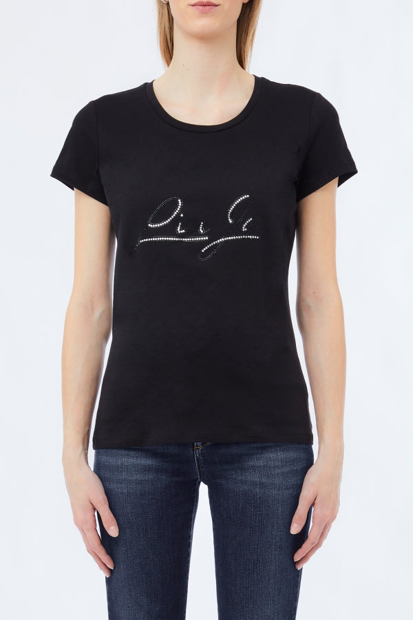 T-shirt con strass e logo