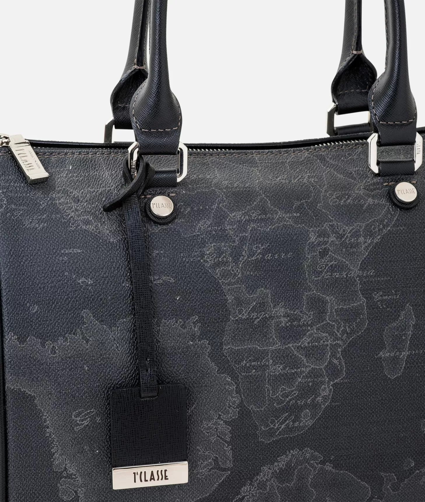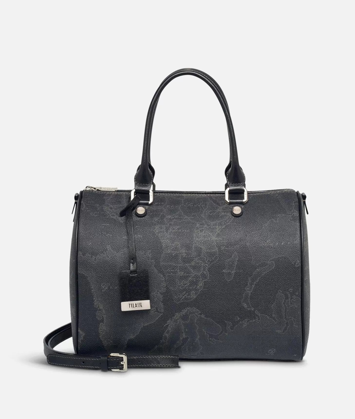 Borsa a bauletto medio in tessuto stampato con cartina geografica Geo Black