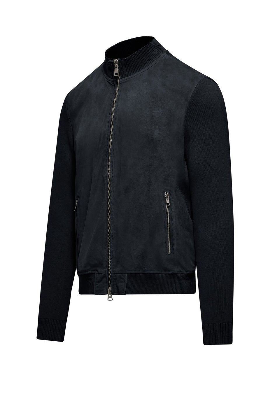 Un giubbotto in cui lo stile contemporaneo si incontra con il classico, la maglia con la morbida pelle, senza tralasciare alcun dettaglio come le rifiniture a costine del collo, del fondo e dei polsi.