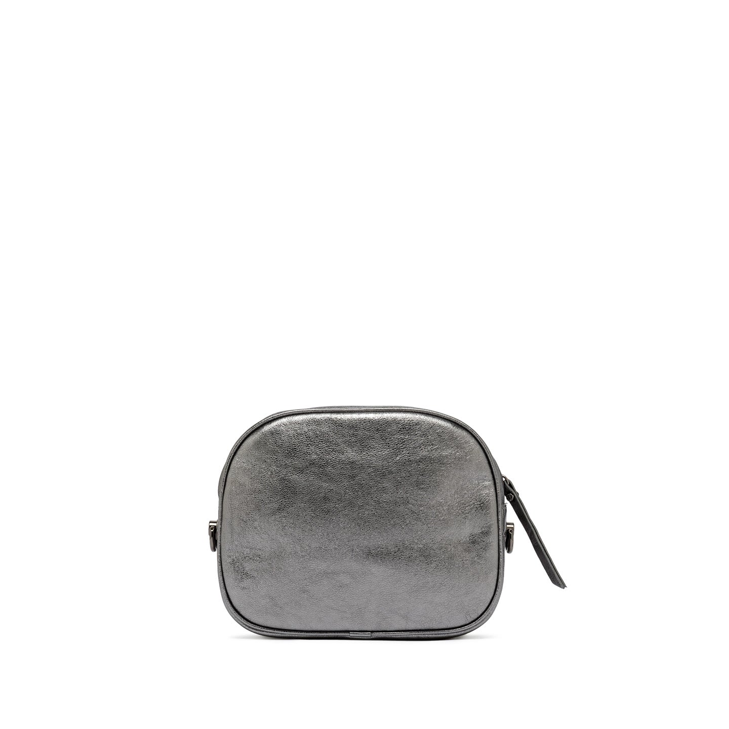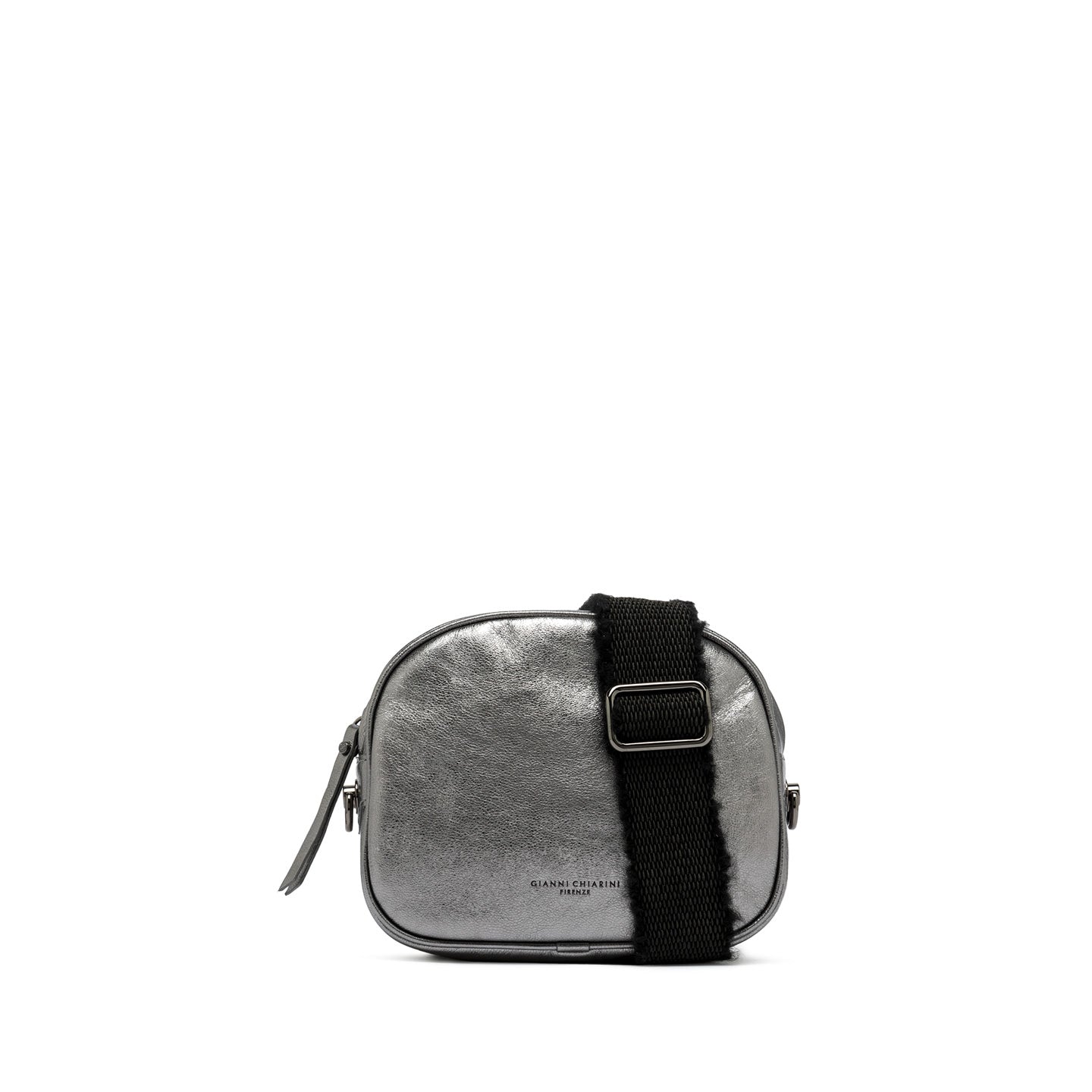 Nina by Gianni Chiarini Firenze è una pratica borsa a tracolla in vernice metallizzata dall'effetto brillante, caratterizzata da una shape stondata. Presenta uno scomparto principale con chiusura zip. Dotata di una tracolla aggiuntiva in tessuto intrecciato per un utilizzo ancora più trasversale. Dimensioni: 21x17x7 cm.