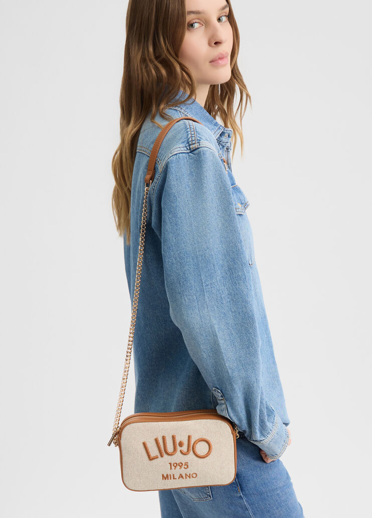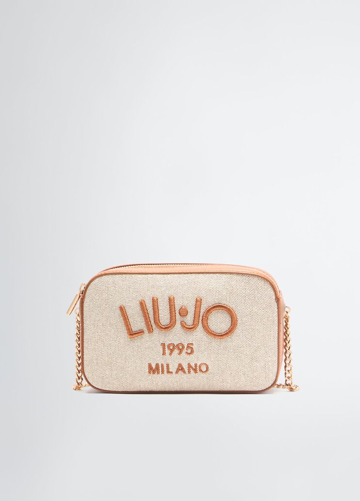 Misure: 21 x 6 x 13 cm Borsetta a tracolla beige e marrone Logo Liu Jo ricamato Scritta 1995 Milano ricamata Chiusura con zip Tracolla con galvanica color oro Design casual