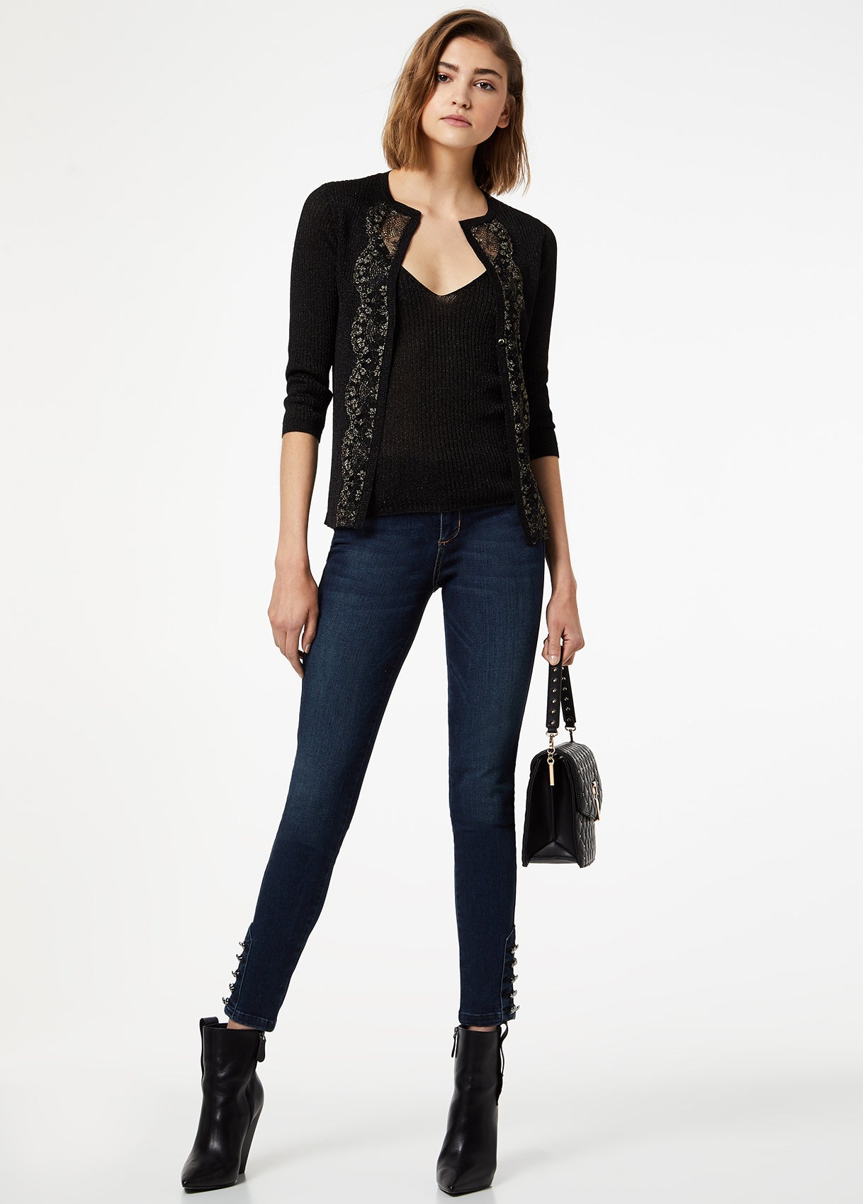 Cardigan in maglia con filati in misto viscosa, inserti in pizzo e chiusura con bottone.