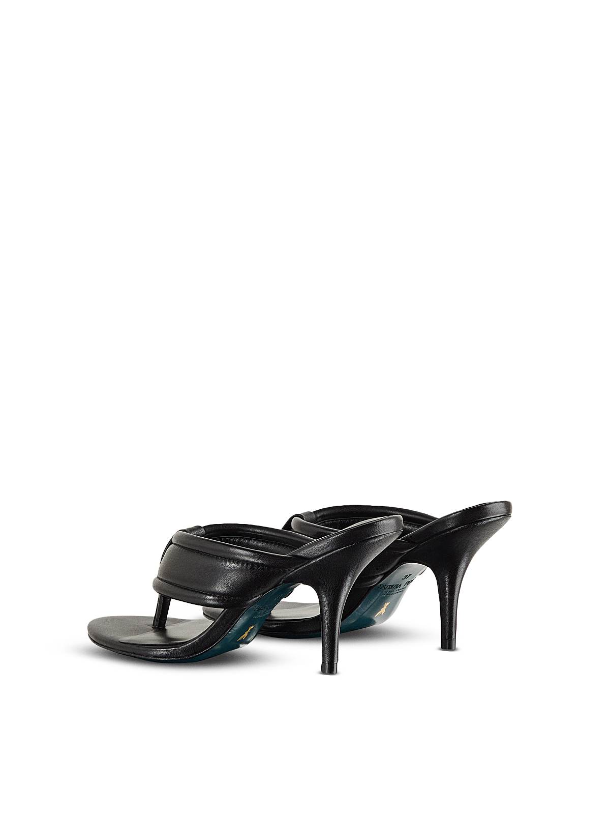 Sandalo con tacco in morbida nappa, sofisticato e femminile. Le fasce imbottite avvolgono delicatamente il piede, il dettaglio Fly aggiunge carattere, mentre il fondo cuoio personalizzato svela unicità.