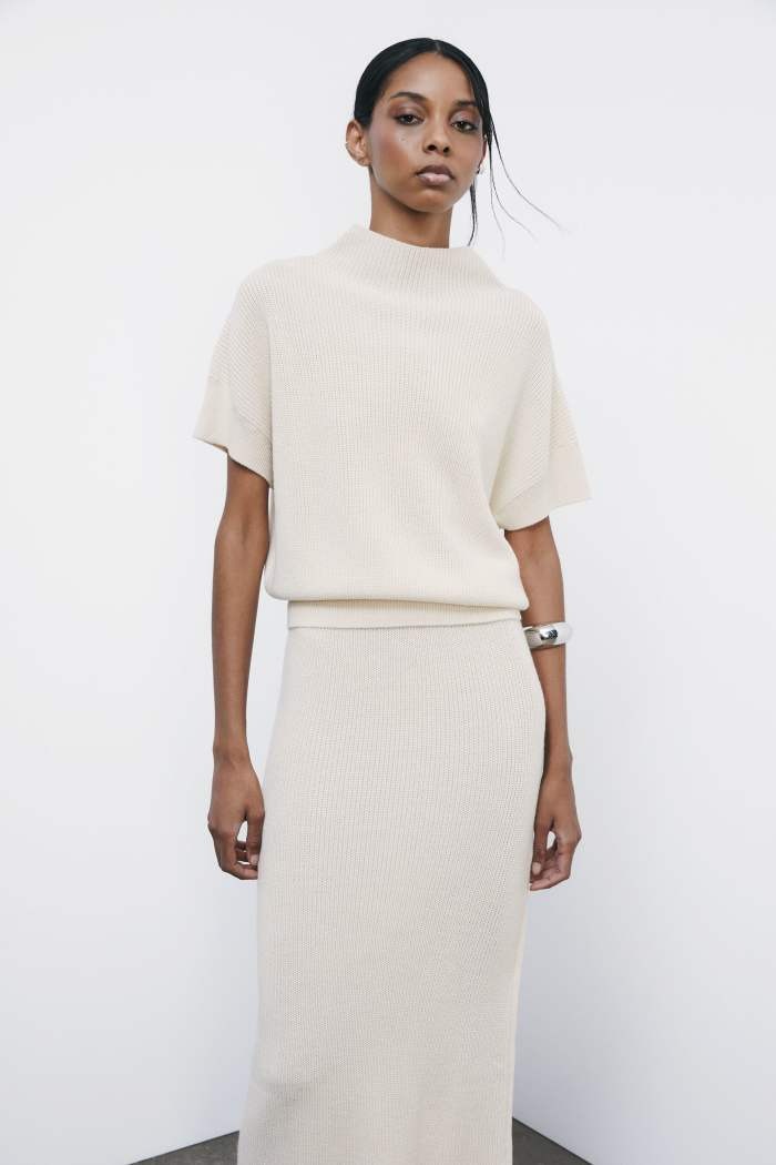 Maglia smanicata della linea ESSENTIAL lavorata a costine, con collo alto e silhouette minimal dal fit rilassato. Le maniche ampie con spalla scesa esaltano lo stile contemporaneo del modello, perfetto in coordinato con la gonna midi per un matching set effortless dallallure senza tempo.